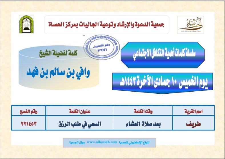 كلمة فضيلة الشيخ وافي بن سالم القحطاني